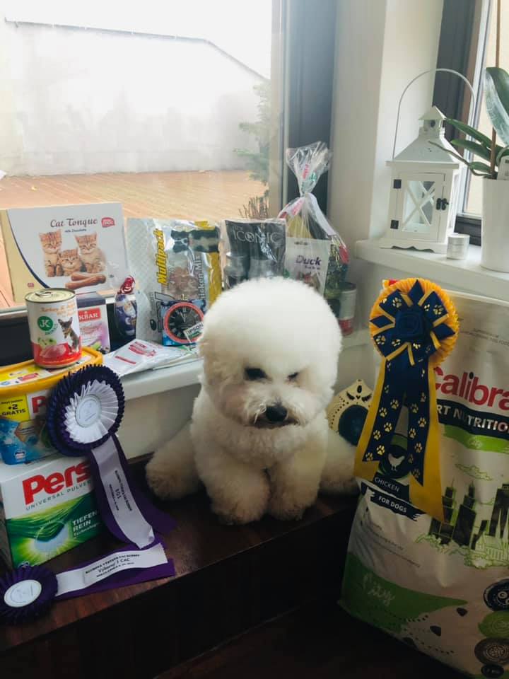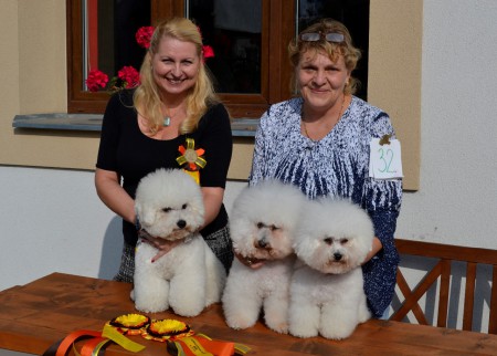 na klubové výstavě KCHB získal Ivánek Sněhová packa tituly výborný 1, CAC a BOB !!!!! Jsem na toho kluka ušatého i jeho paničku velmi pyšná. Výstavy se zúčastnili všichni TOP bišonci a Ivánek v této velmi silné konkurenci získal ocenění nejvyšší.